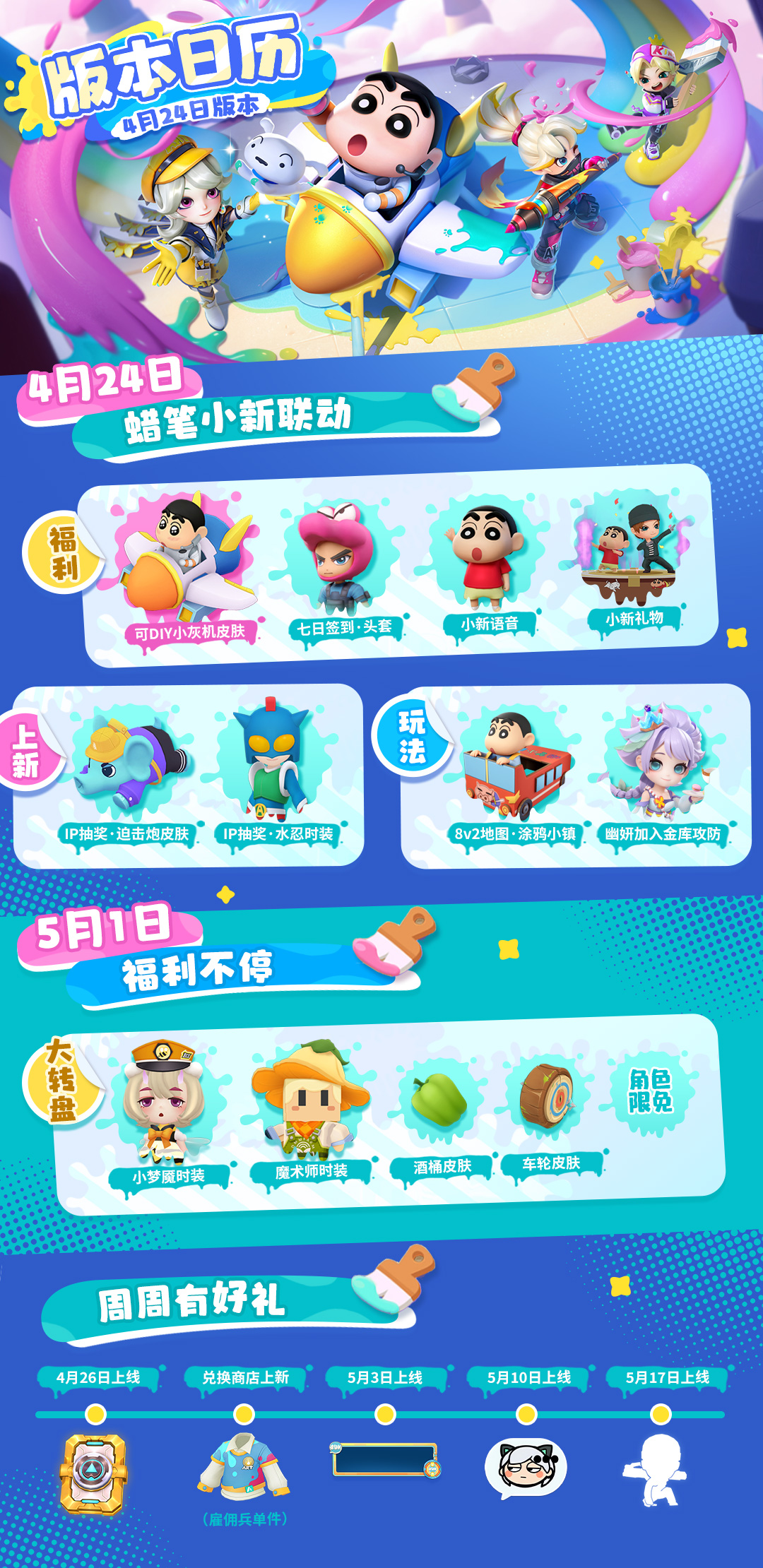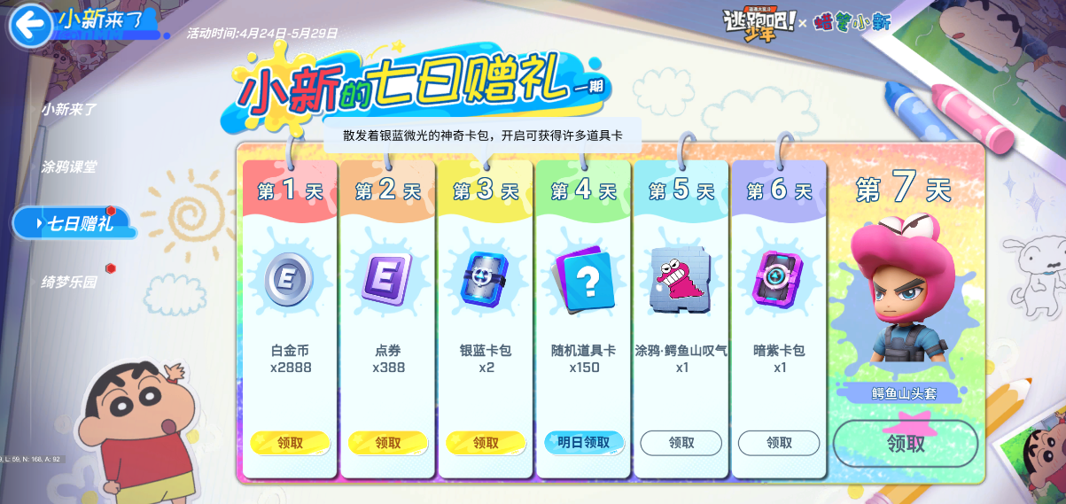 本次蜡笔小新联动版本将于4月24日开启,划重点——福利、玩法、小乐子通通都给少年们准备好啦!
