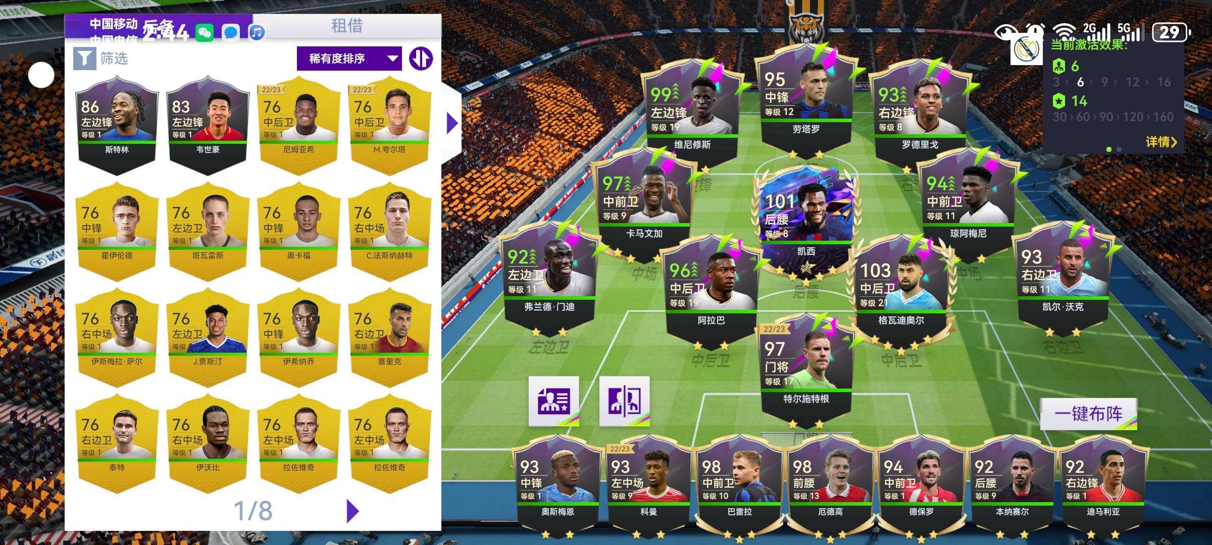 刚改完阵容用一张88,一张90一张91。换了多纳鲁马