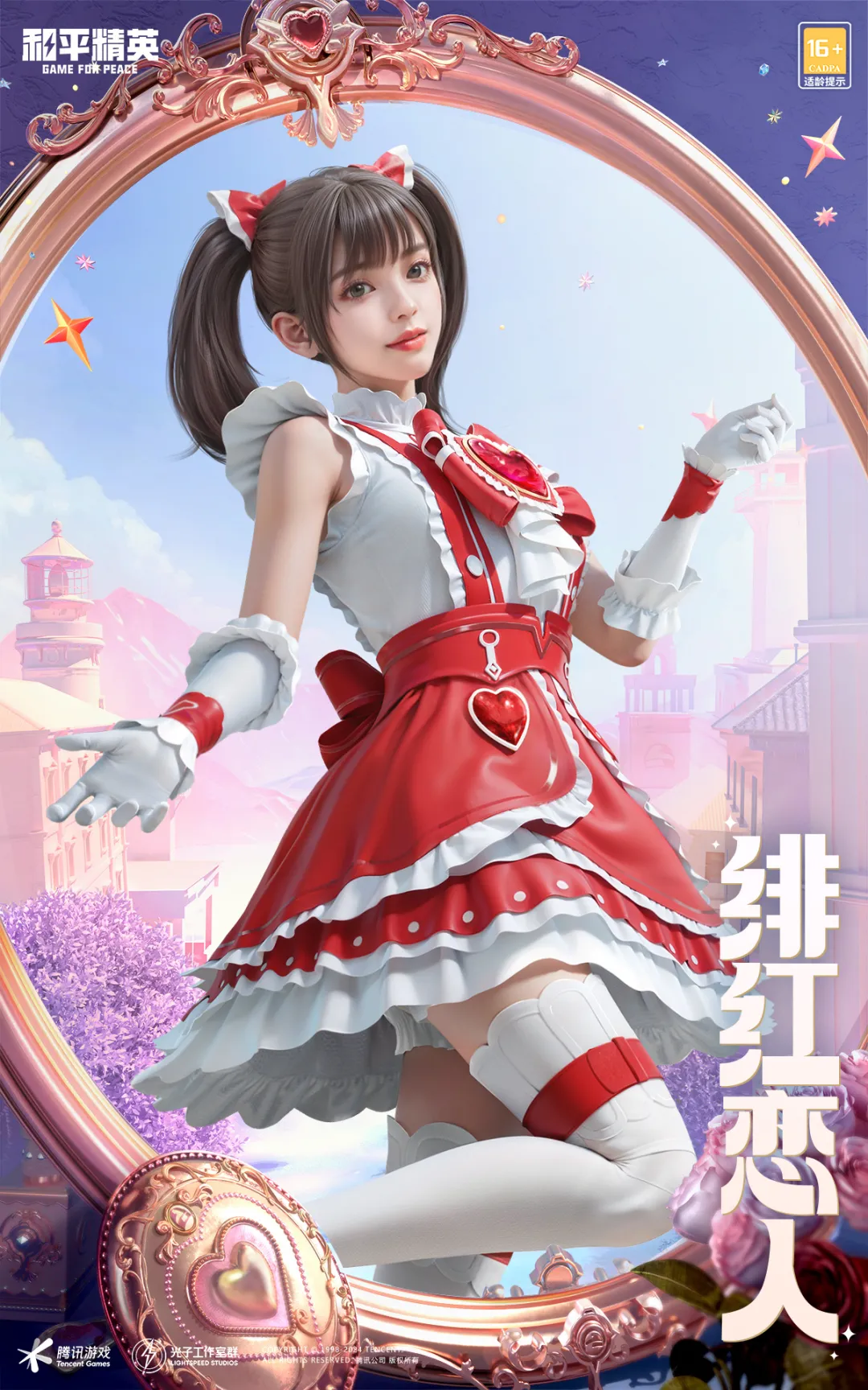 少女的脸庞在晚霞的照耀下显出一片绯红的色彩,俏皮的双马尾和红色的裙摆在微风的吹拂下轻轻晃动,胸前的爱心将少女的心事呼之欲出,恍惚间,四级包仿佛看见了当年懵懂的自己…呀,哪个小女生还没有个害羞的时候呀!