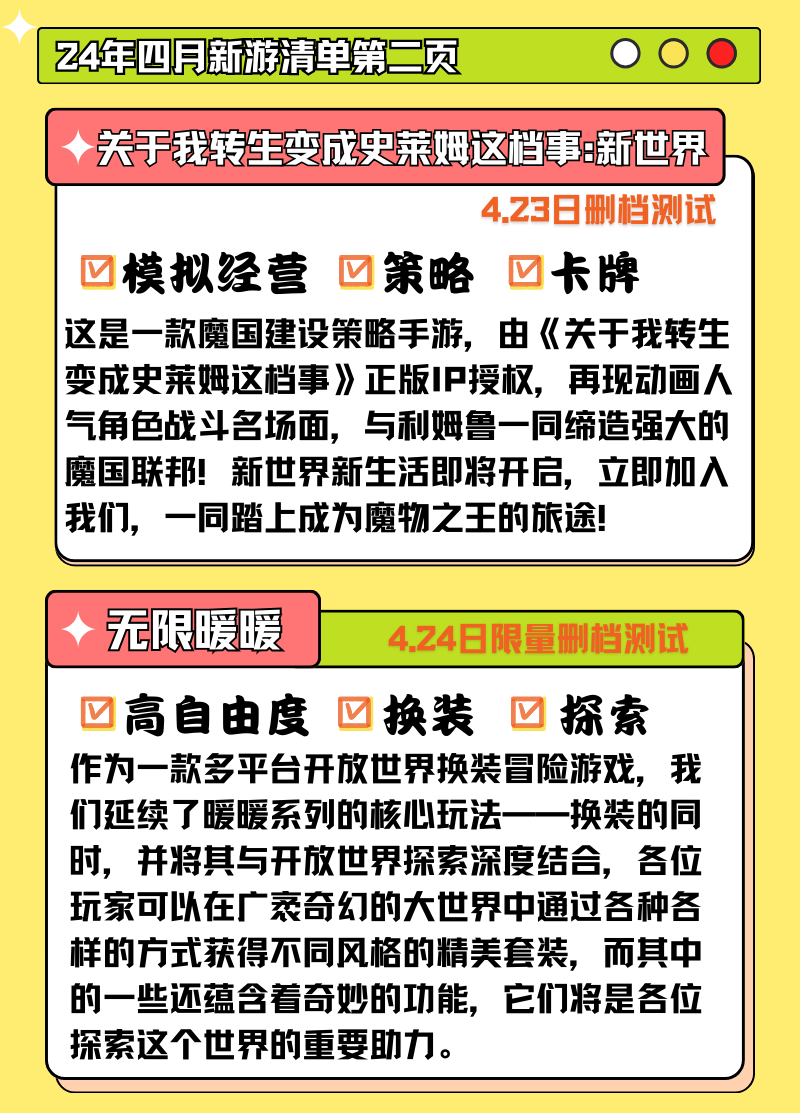 哈喽,游戏圈的宝宝们!我是版主沐晓霜,4月总计推荐8款重点新游,为了方便各位小伙伴阅读,沐晓霜拆成了2期内容,这里是第二期!欢迎各位小伙伴观看!