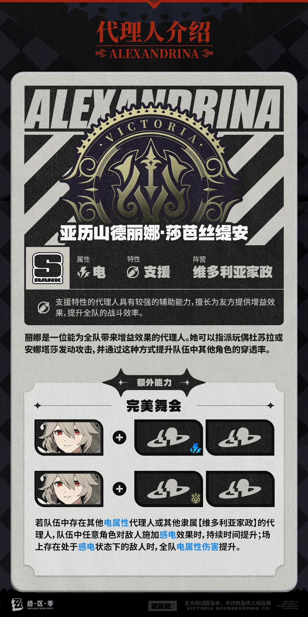 资料库中已收录代理人【亚历山德丽娜·莎芭丝缇安】的战斗相关信息,重点内容解析完毕,请查收。