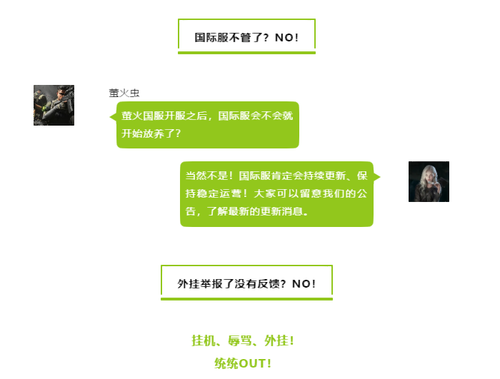 随着越来越多的萤火虫加入,游戏也越来越热闹。但在我们还沉浸在萤火突击越来越好的喜悦之时,谣言也开始满屏飘起,有些谣言听得我们在工位上抓耳挠腮,恨不得冲出屏幕来澄清这些无稽之谈!