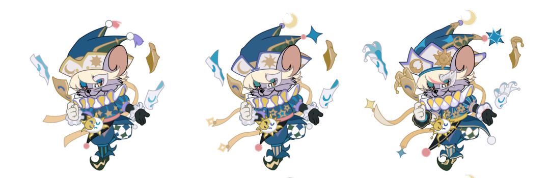 尼宝·绮梦飞影在3S级状态时,走、跑、跳、护盾等将拥有全套日月面具和马戏帷幕、及礼帽特效。