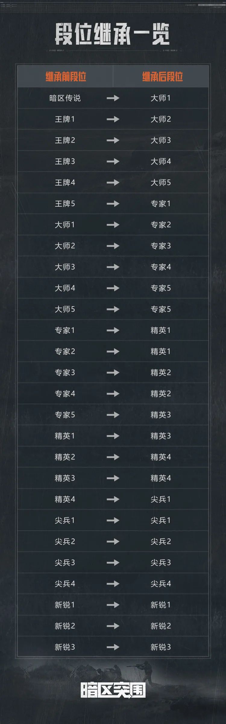段位将在S7赛季结束后进行重置并继承段位,对应继承规则如下: