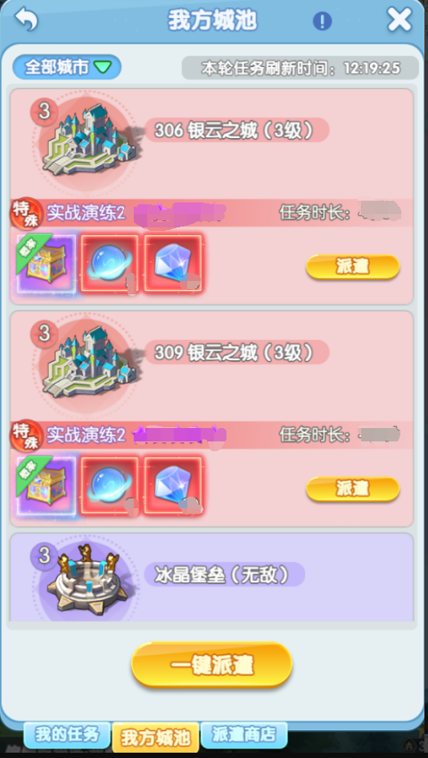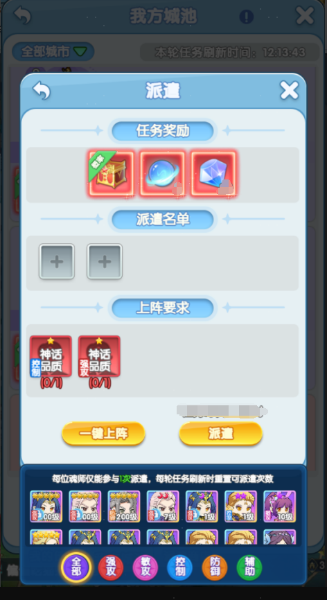1、玩家可以在我方城池界面浏览可以派遣的所有任务,品质高、奖励好的任务会放在列表开头,每个我方的城池,每轮任务期间,只会刷出一个任务,城池等级越高,能刷出的任务品质越高,2级以上的城还有概率刷出特殊任务!