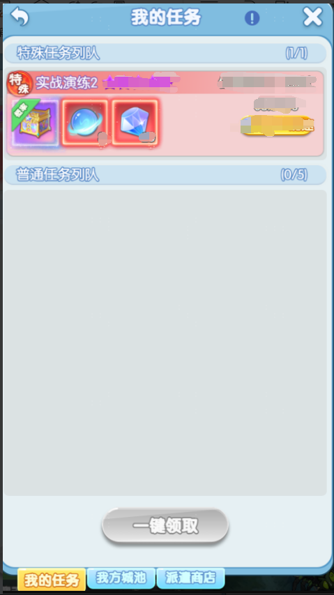 4、玩家个人正在进行中的所有派遣任务,会统计在“我的任务”界面中。每名玩家可同时进行“一定数量的的特殊任务”和“普通任务”。执行中的任务,需要等待倒计时结束,才能领取奖励。