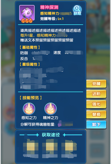 4、消耗本体及其他进阶材料可提升品质和精神之火数量,每增加1个精神之火,可增加对应类型精神力,例如感知类精神本源每增加1个精神之火,感知精神力可增加X点;