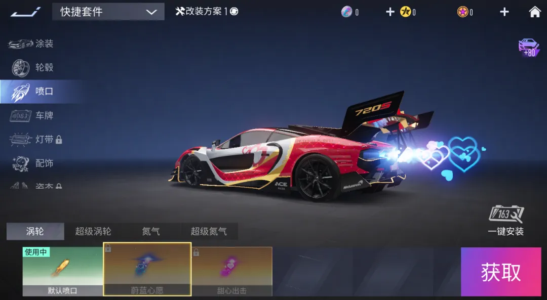 您可自由选择并装配全新喷口表现到“涡轮”“超级涡轮”“氮气”“超级氮气”槽位,亦可自由调整全新喷口的亮度和速度,还在等什么?速速前往时尚节玩转超炫喷口,做时尚节最靓的车手吧!
