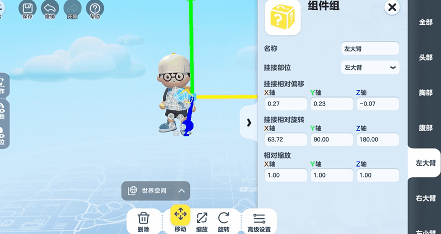 生物自定义外观界面支持按世界坐标系编辑
