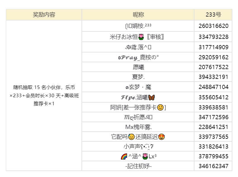 随机抽取5名玩家送出233乐币+乐园会员*5天+社区头衔【阿拉德勇士】*15天;