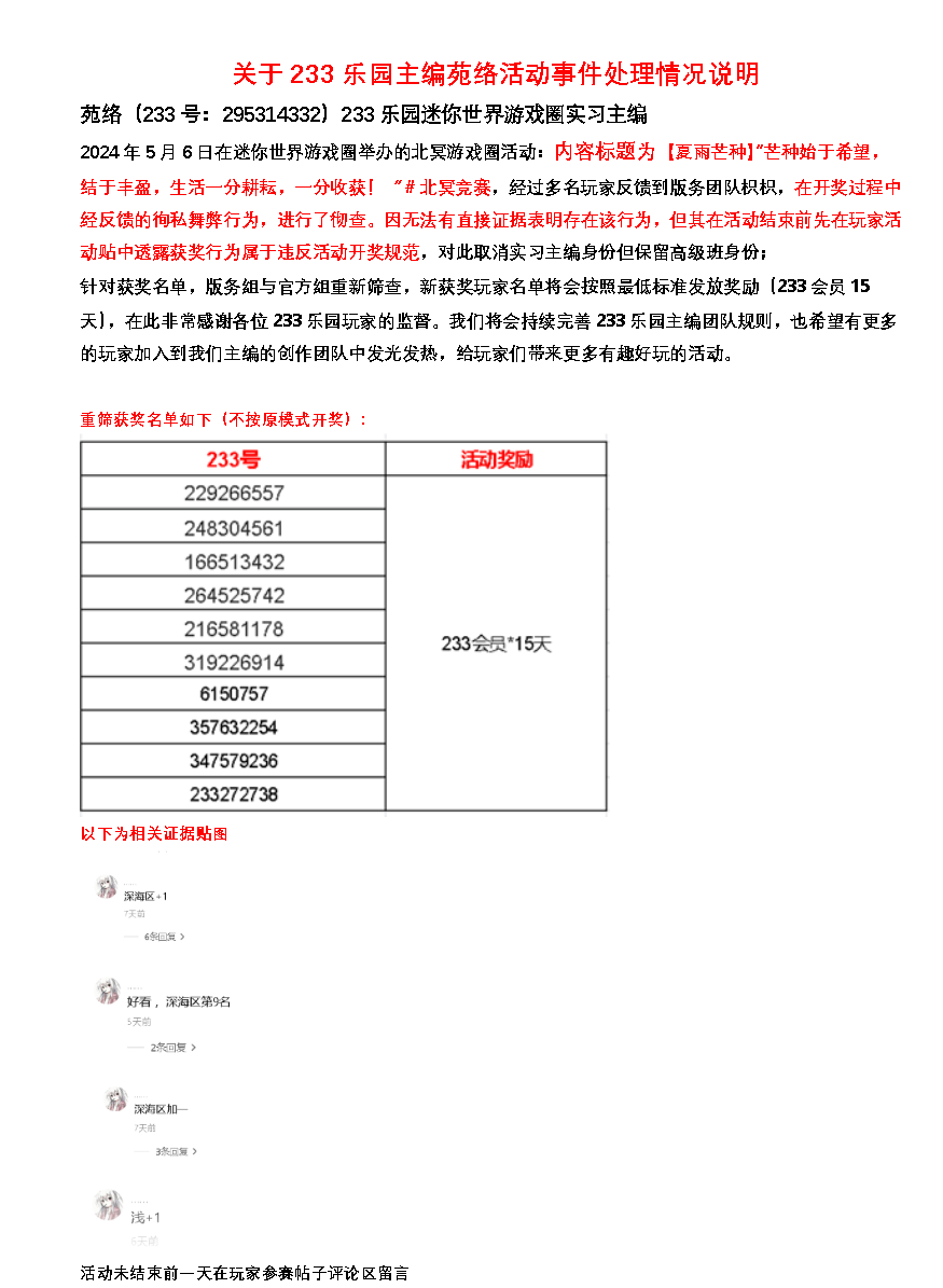 5、活动结束后将会在1-3个工作日内进行开奖,获奖名单将会公布在本贴中,并在7个工作日内完成对奖励的发放,届时请留意相关通知;