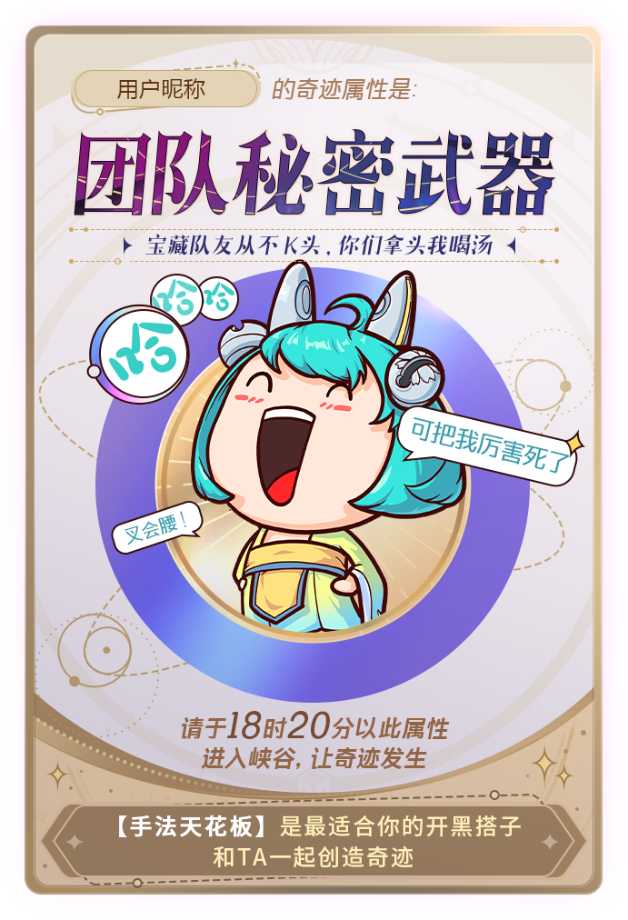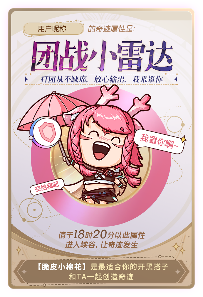 参与活动激活你的奇迹属性,与最适合你的开黑搭子一起,创造奇迹吧!