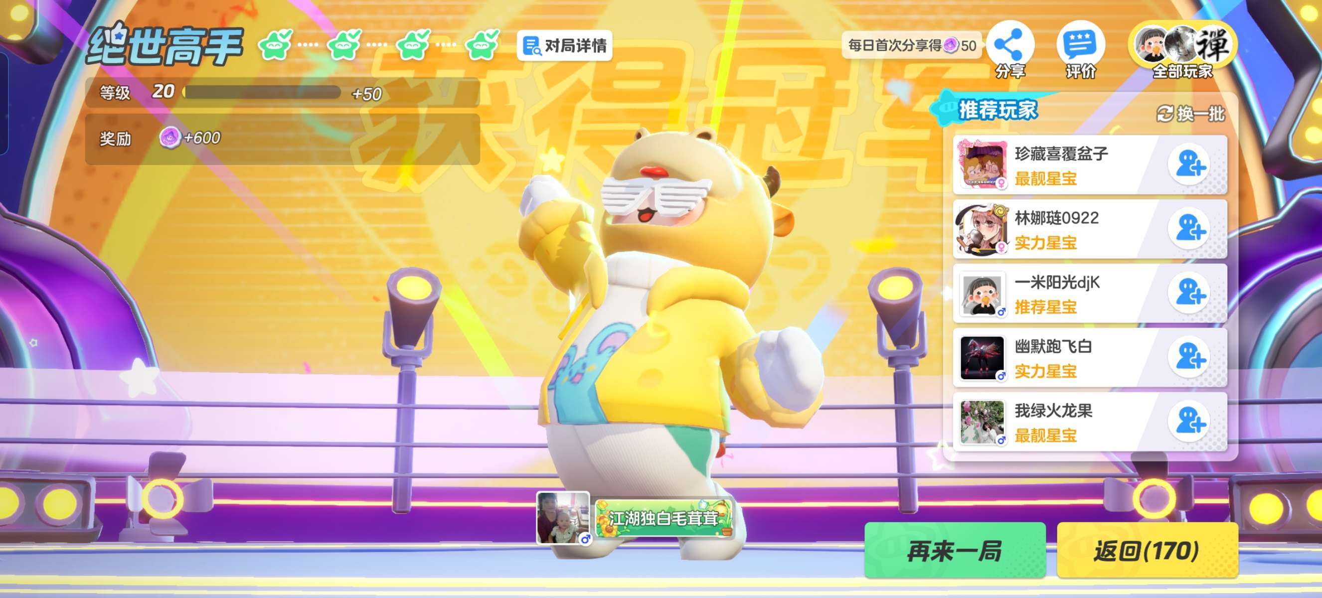 今天是,我生日 没想到玩了一下圆梦之星,居然就获得了冠军