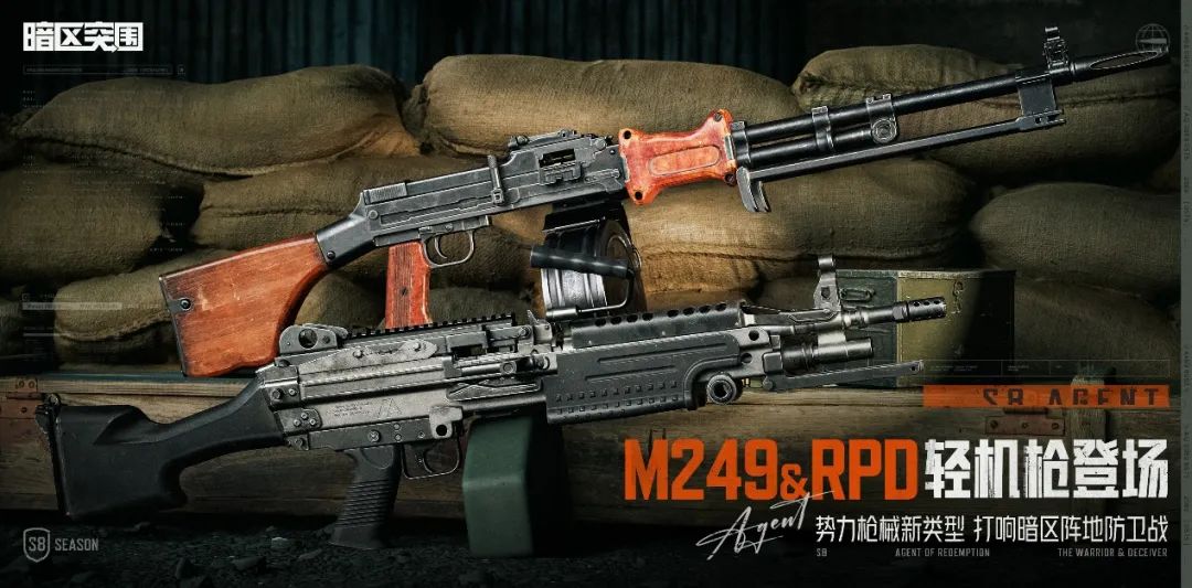 《暗区突围》全新版本新增两款势力枪械——M249轻机枪、RPD轻机枪,带给各位先锋前所未有的开火体验!其中,M249轻机枪的枪管可快速更换,前方可装配折叠式两脚架利于部署定点火力支援;该枪械可在势力联络人凯拉处兑换。而RPD轻机枪同样拥有无可比拟的火力输出优势;该枪械可在势力联络人安德烈处兑换。想要在暗区部署致命一击火力点位的先锋,千万不要错过。