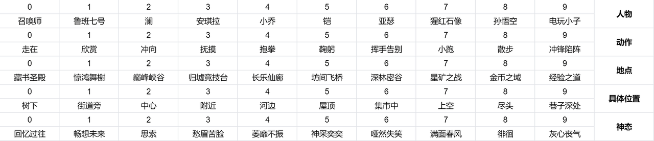 2、各位召唤师根据自己233号的后5位在每个数字对应一个内容的情况下,根据下面的表格所对应的关键词,看看能组成怎样一个有趣的句子呢?