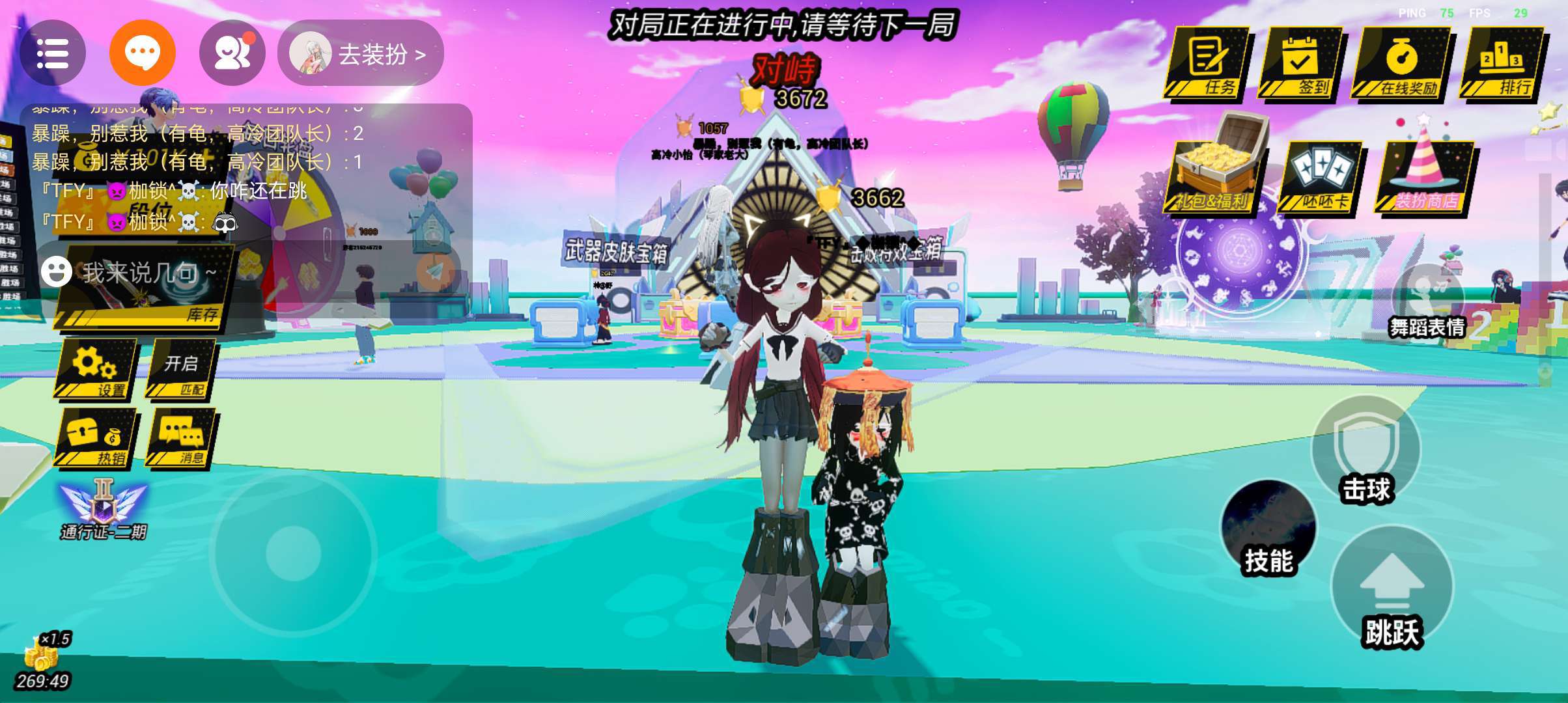 选择你最爱的武器来参加比赛! 时刻盯紧飞向你的球,在即将打到你时点击“反弹”按钮将它弹飞,和其他人竞争活到最后! 超越其他人吧,成为排行榜最耀眼的那个人! 【4月23日更新内容】 1.更新玩法内容,每局新增护盾,第一次攻击失败护盾破裂,第二次攻击失败会被击败。 2.新增全服喇叭系统,使用全服喇叭喊话,所有房间内的玩家均可收到消息; 小可爱们可以在热销商店购买全服喇叭。 3.新增武器皮肤,增加更加炫酷的神话品质武器。 4.新增全场动画,小可爱们可以在进入对局和获得最终胜利时展示自己的最佳动画; 动画可以在装扮商店购买和预览哦! 5.新增弹幕系统,现在小可爱们打字可以显示在屏幕上啦! 弹幕框也可以在装扮商店购买哦~ 6.轮盘抽奖奖池内容更新。 7.新增击败特效,增加更加炫酷的神话品质特效。 8.新增技能,增加更加炫酷的技能。 9.新增段位达成奖励,小可爱们每到一个新段位都会有对应的段位奖励哦~ 10.新增二期通行证。 11.新增热门舞蹈动作,Fate、swag等。 12.修复其他问题。 如果小可爱们发现有物品购买不了的话,请将233乐园升级到最新的版本哦!