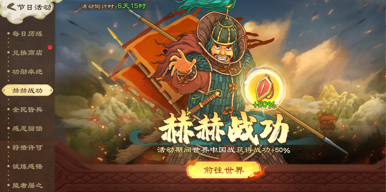 活动期间,世界中国战获得额外战功