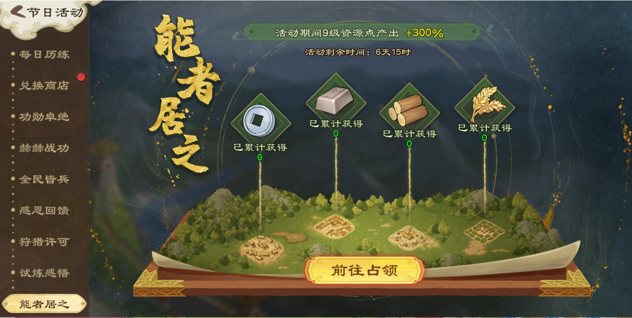 活动期间,9级资源点产出+300%