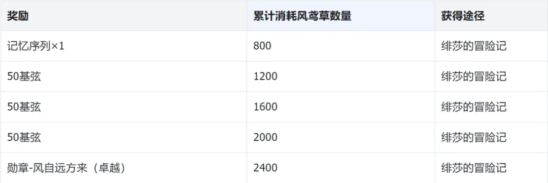 活动期间消耗「风鸢草」可在【绯莎的冒险记】中解锁信件及奖励;