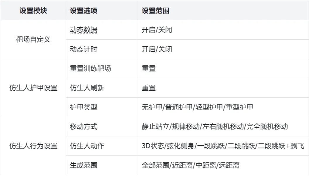 新增靶场设置界面,在靶场中按F2键可打开,可进行的设置如下: