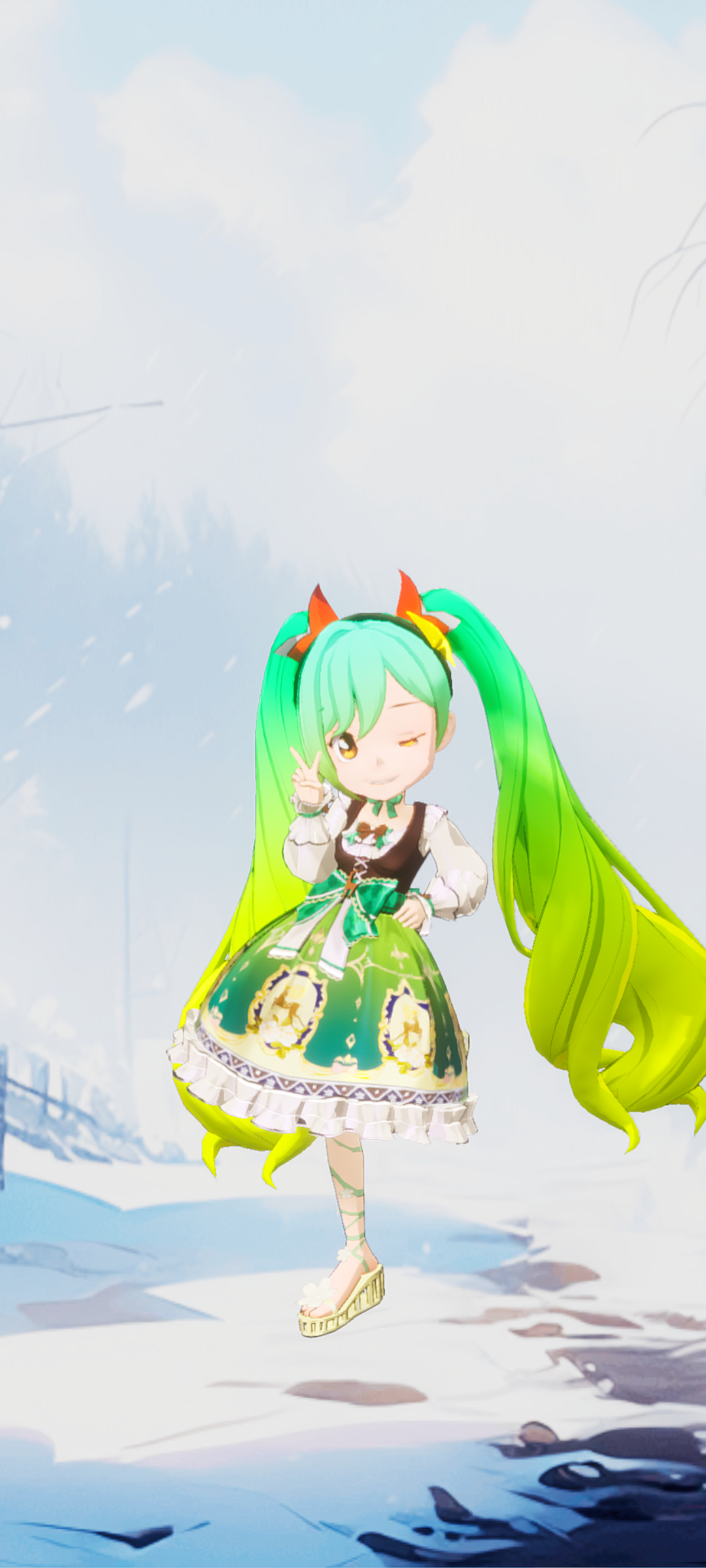 绿色系列小女孩加上白色雪地