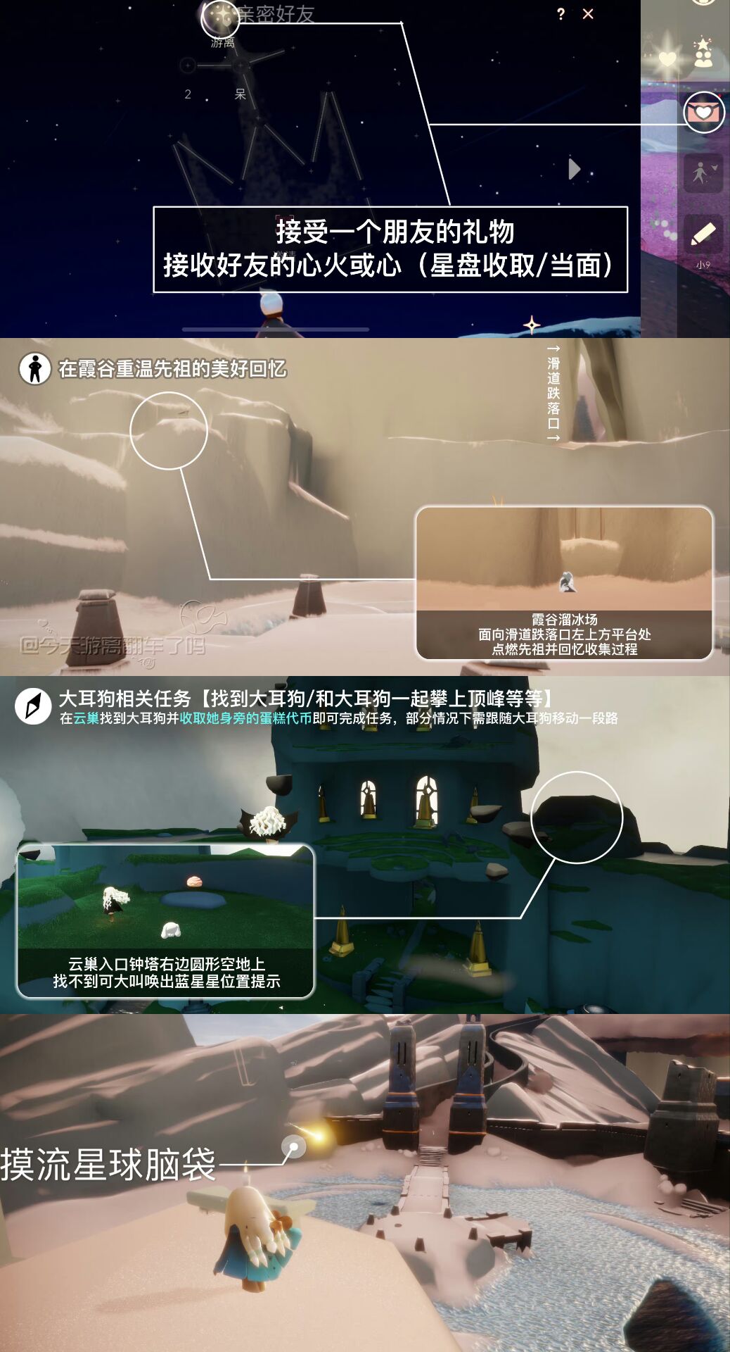《光遇》游戏中每天的每日任务及大蜡烛的位置都不相同,玩家完成每日任务及收集大蜡烛都可以得到丰厚的兑换奖励,奖励可以用于兑换各种动作及道具,不过很多小伙伴不知道每日任务怎么做,又懒得自己去找大蜡烛的位置,我们汇总了每日任务的完成攻略以及蜡烛位置,一起来看看吧!