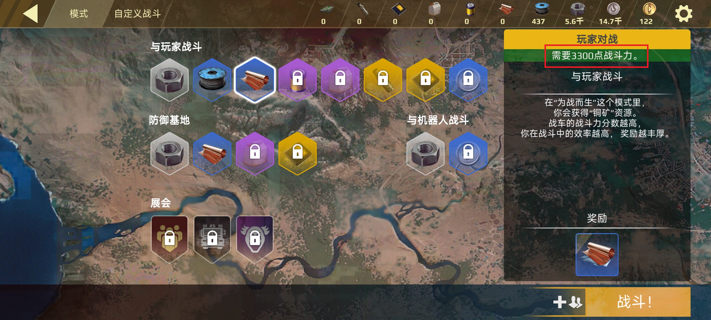 在《创世战车》移动版中,战车的战斗力将直接影响可以参与的游戏模式,如在PvP模式中就根据战车的战斗力区分出多种不同的掉落物:任何战车都可以获取废铁,蓝色品质的电线和铜则需要3300战斗力等……