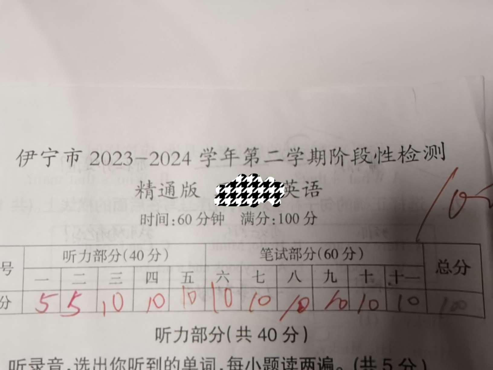 作者六年级哦 英语其中考试成绩 考的不咋地