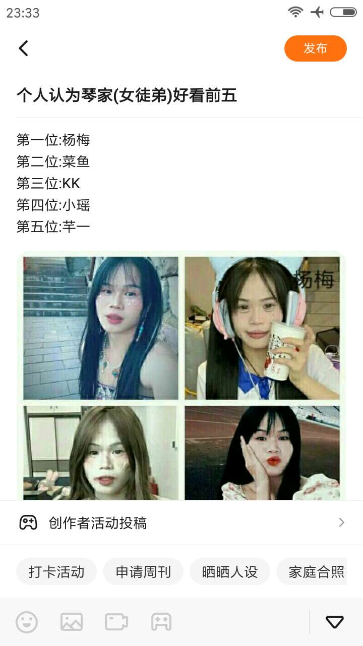 我认为琴家最好看的五位女徒弟(个人感觉) 第一位:杨梅 第二位:菜鱼 第三位:KK 第四位小瑶