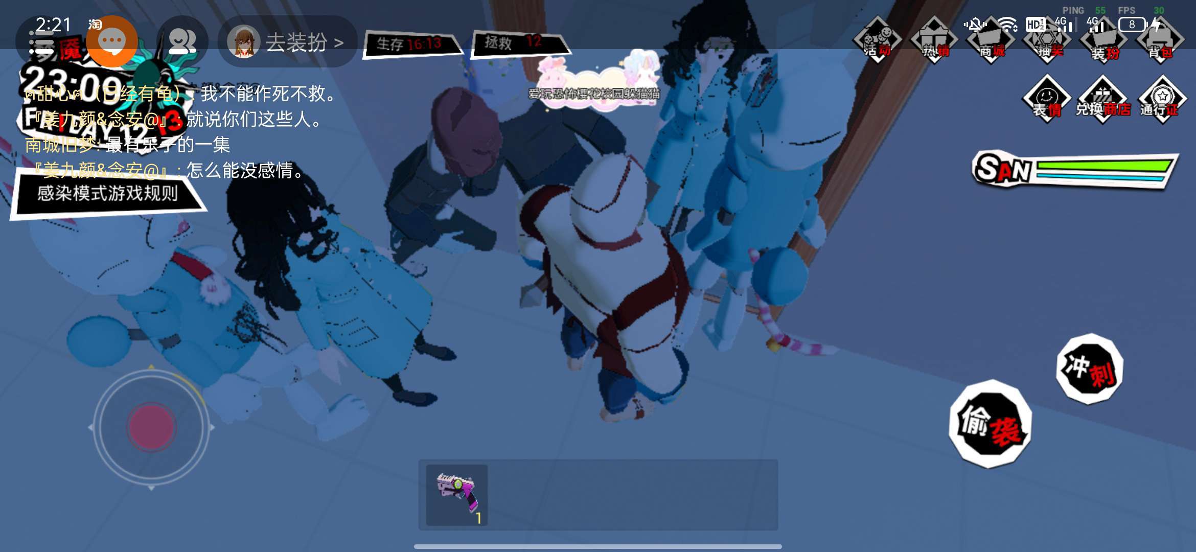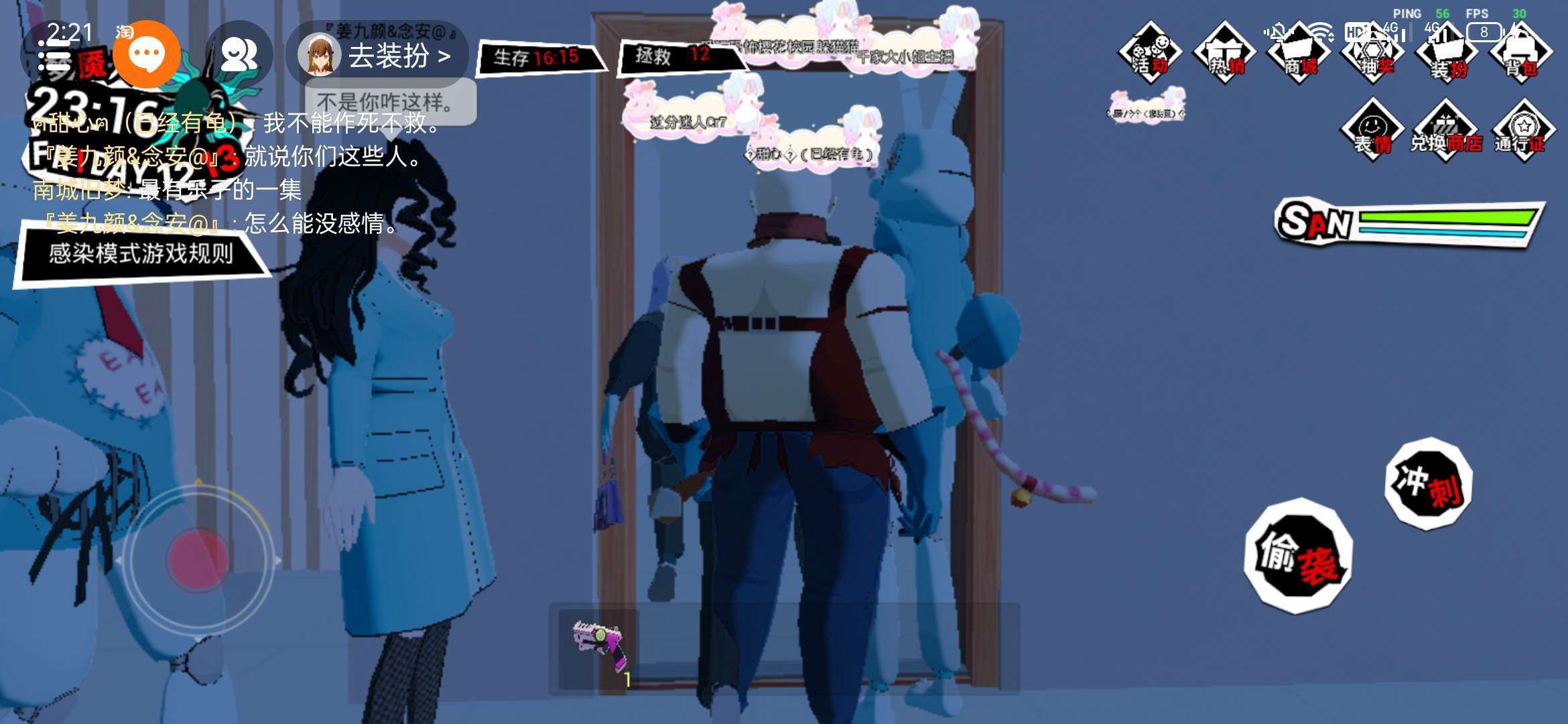 官方你管管他吧 他一直在说我不能见死不救 然后他就堵住门口 就这个裂口女 堵住门口不让我们打他 到早上了他还在那儿堵住