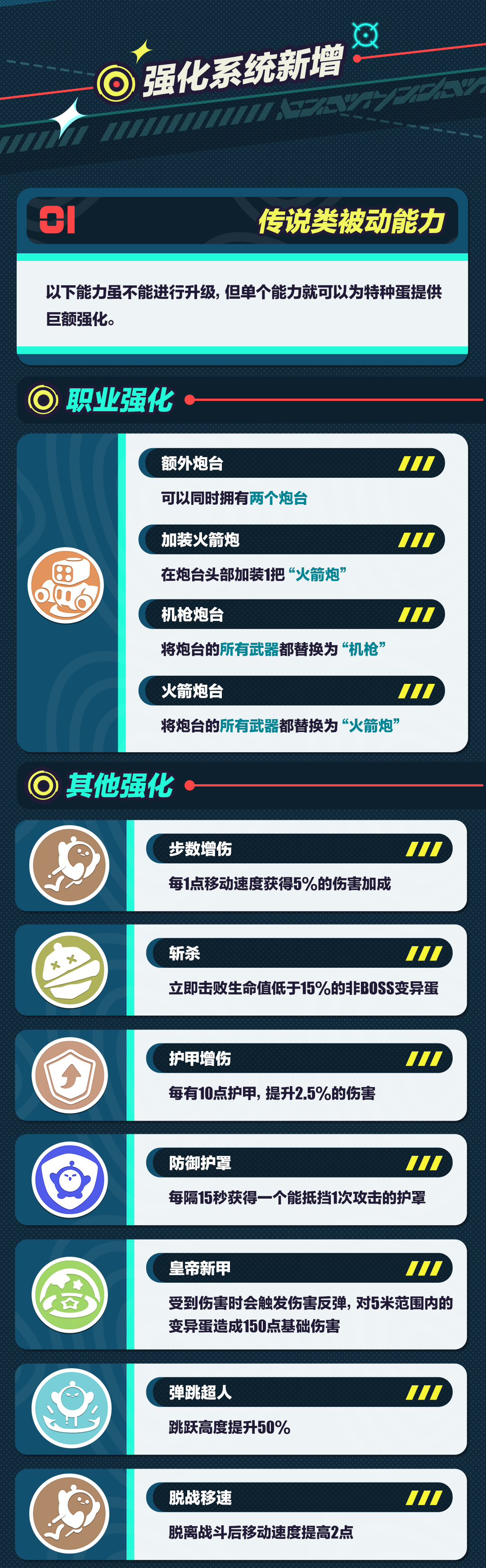 “额外炮台”与“加装火箭炮”均为职业强化效果