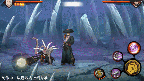 普通状态的漂泊君麻吕拥有4颗奥义点时,可点击奥义键可击飞对手并进入咒印状态,同时双方会进入布满骨刺的结界当中。