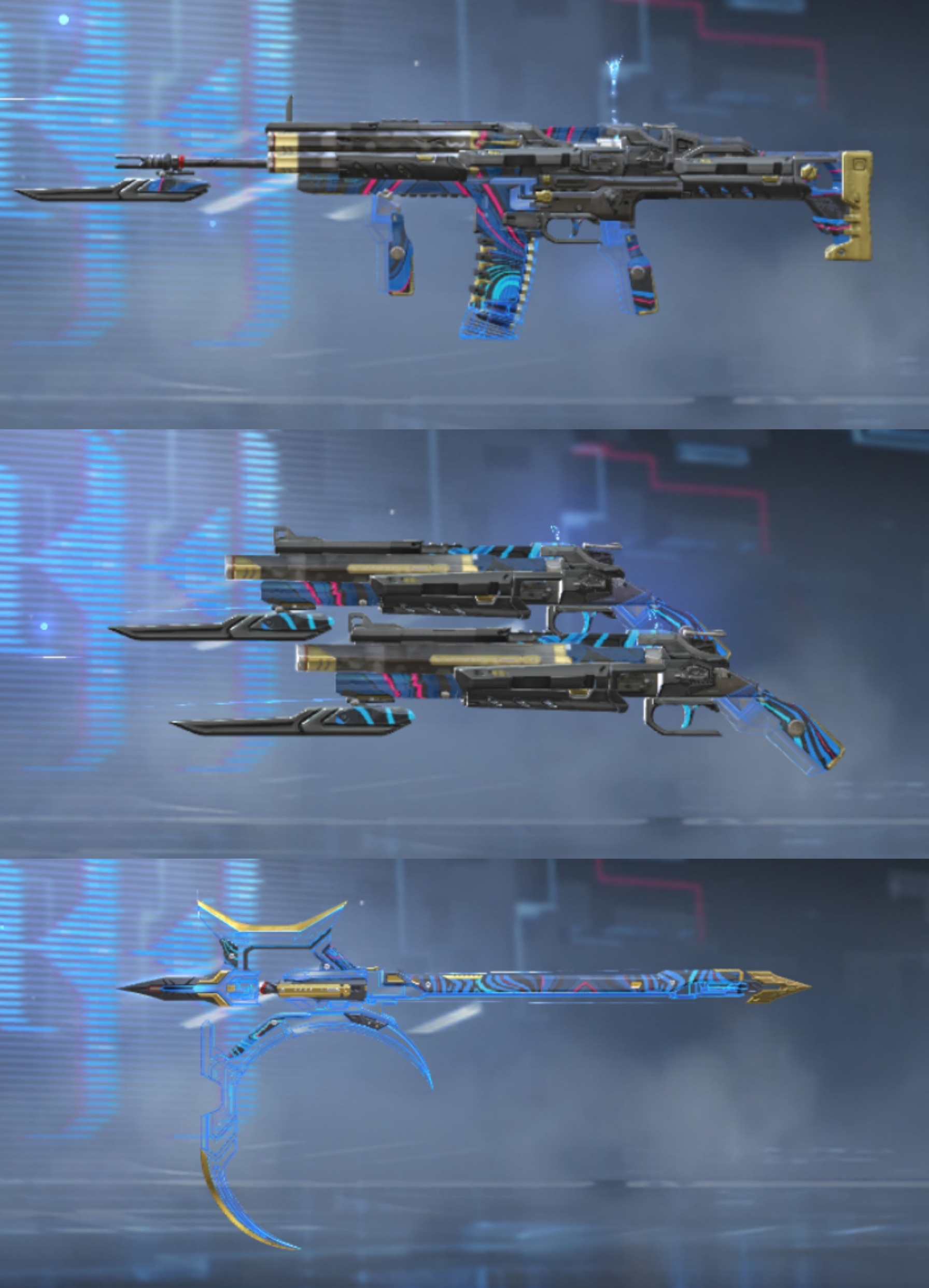 智勇、刚猛、威震是它的特点,SCAR-文远拥有炫酷的角色持枪展示动作;双管猎枪-文远装备了全息倒三角瞄准镜,在双喷尾部散发着紫色光芒并喷出三角状的能量粒子;挥出虎贲钩镰刀,随即出现一道紫色裂痕,仿佛撕裂时空一般,十分震撼。同时装备双管猎枪-文远和虎贲钩镰刀后可以触发套装属性:射速提升、受击上扬降低。