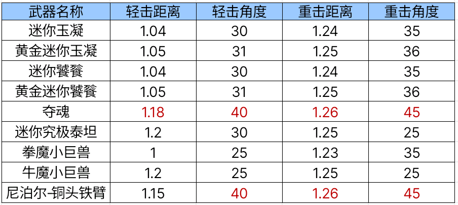 我们先来看看迷你玉凝的武器数据,它的轻击距离为1.04,轻击角度为30;重击距离为1.24,重击角度为35。如果你够仔细的话,一定会发现迷你玉凝的数据和山海经饕餮BOSS掉落的迷你饕餮相同。