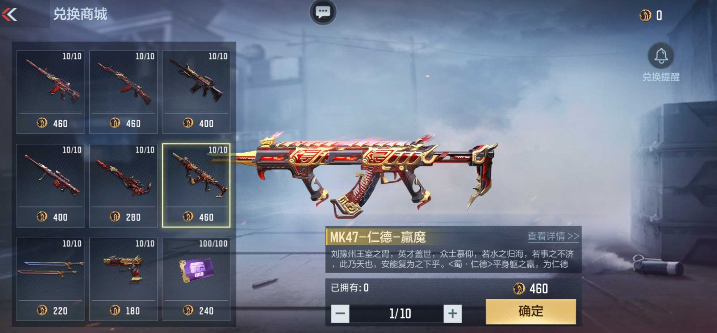 至于获取方式,MK47-仁德-羸魔可以通过消耗抽奖代币抽奖获取,也可以在本期夺宝活动的兑换商城中获取,兑换价格460羸魔兑换币。