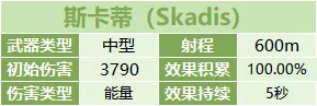“斯奈尔”、“斯卡蒂”、“赫尔”是一系列专为中距离战斗而设计的武器,分别对应轻型、中型、重型,它们最合适的战斗射程范围是500m-600m左右,当然每秒的持续伤害也能确保它们在短时间内被用于近距离对抗。