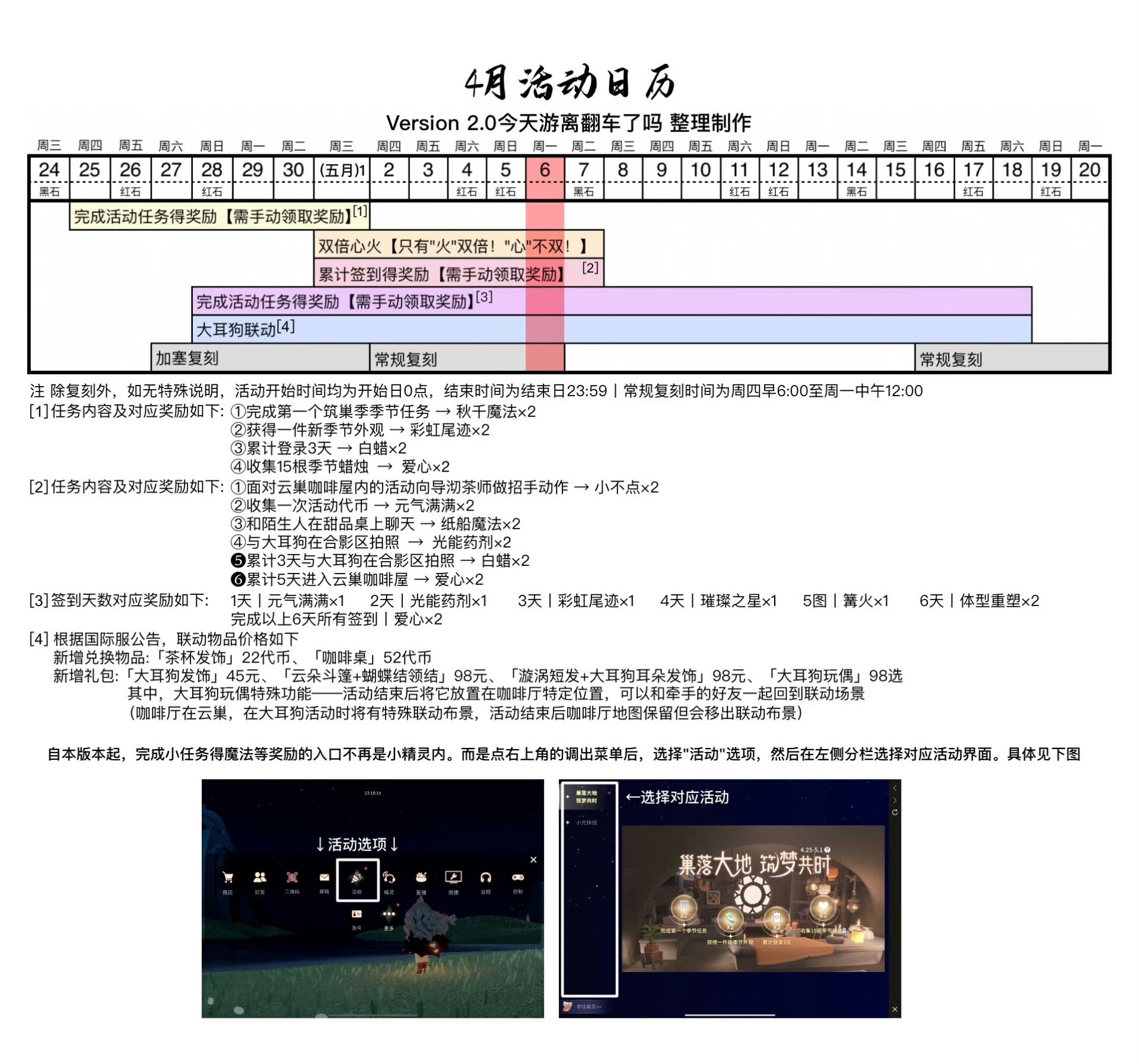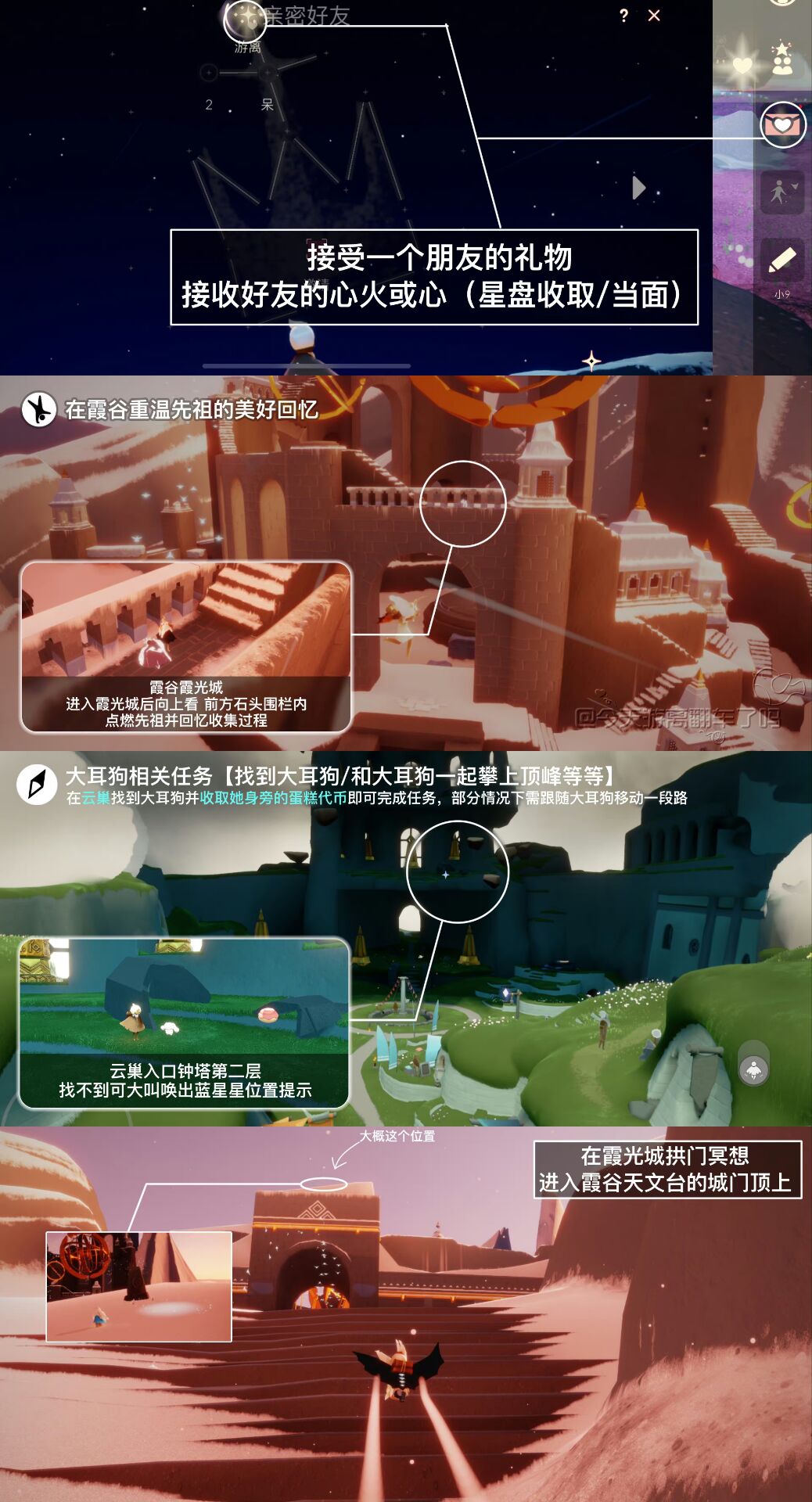 《光遇》游戏中每天的每日任务及大蜡烛的位置都不相同,玩家完成每日任务及收集大蜡烛都可以得到丰厚的兑换奖励,奖励可以用于兑换各种动作及道具,不过很多小伙伴不知道每日任务怎么做,又懒得自己去找大蜡烛的位置,我们汇总了每日任务的完成攻略以及蜡烛位置,一起来看看吧!