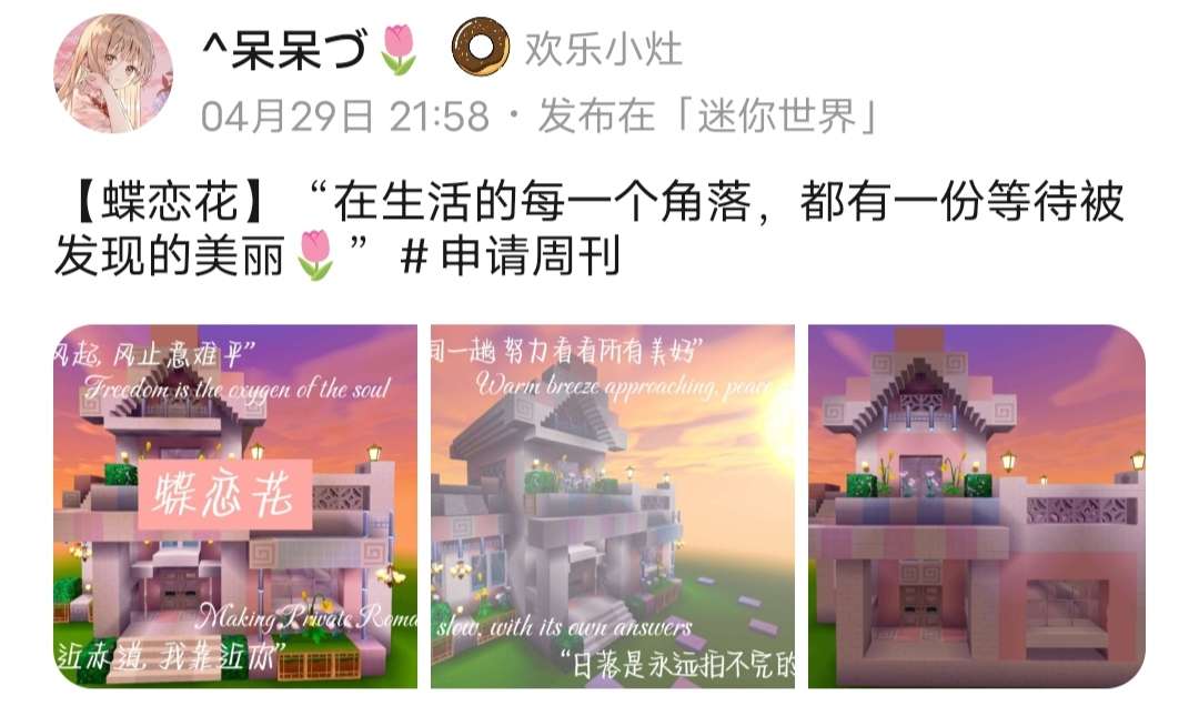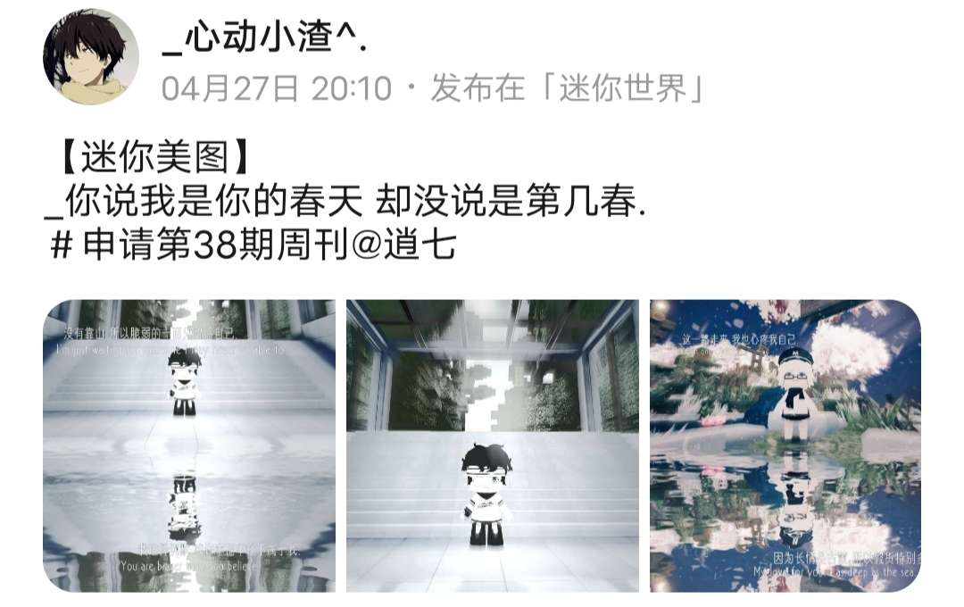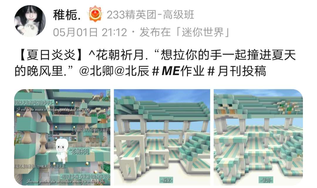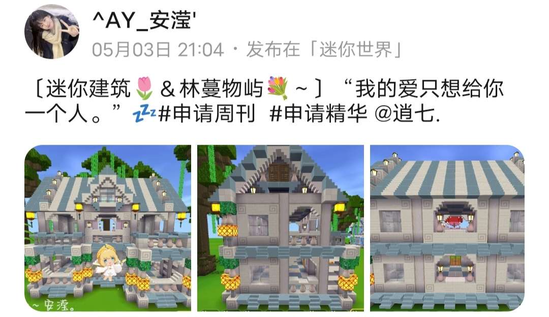 Hi,这里是米卡哇~本期迷你世界周刊由我暂代哦,希望大家不要嫌弃^_^。各位冒险家们跟着米加走进迷你世界游戏圈每周精彩集结吧,每位上榜的冒险家都很优秀哦!