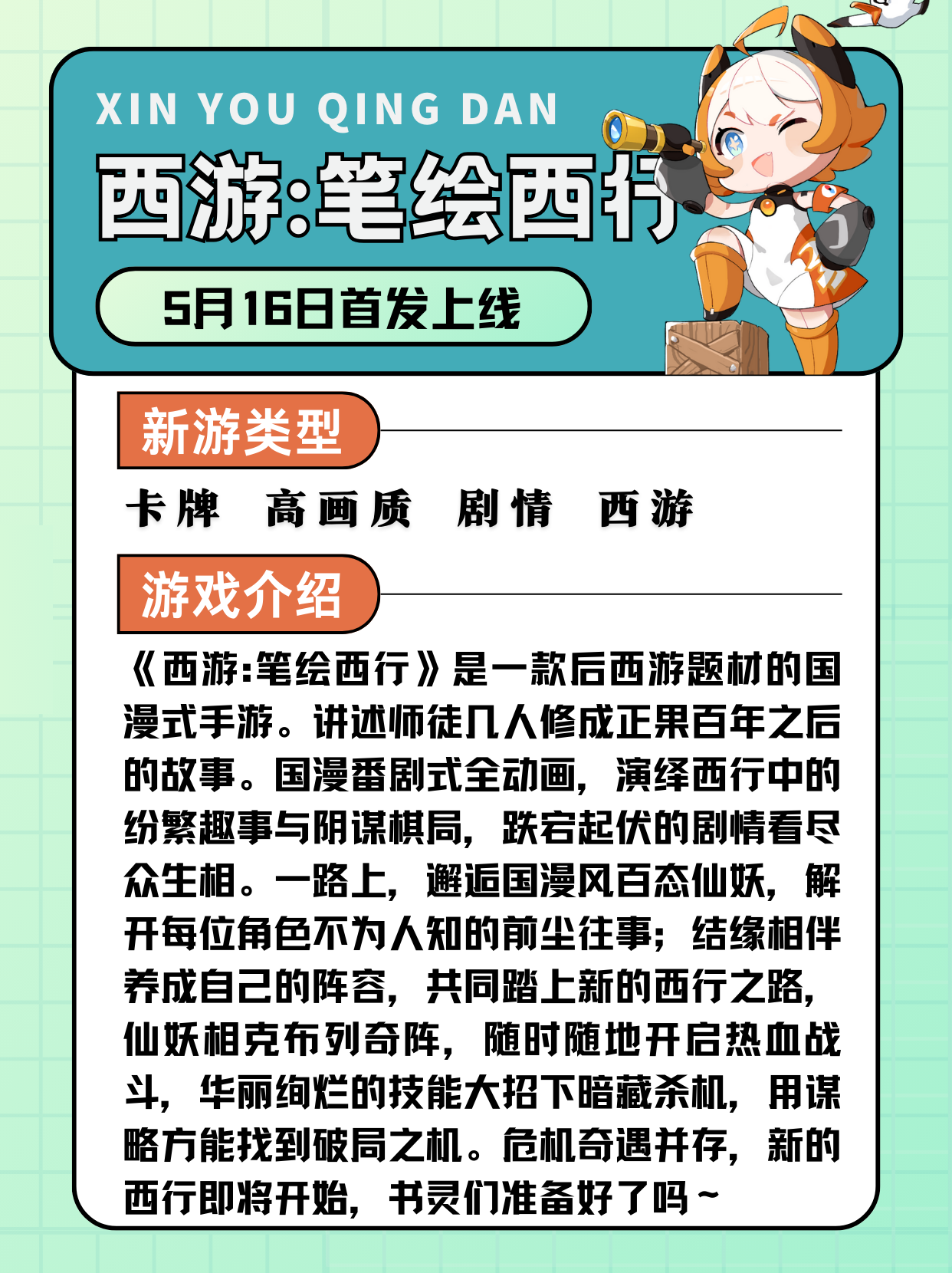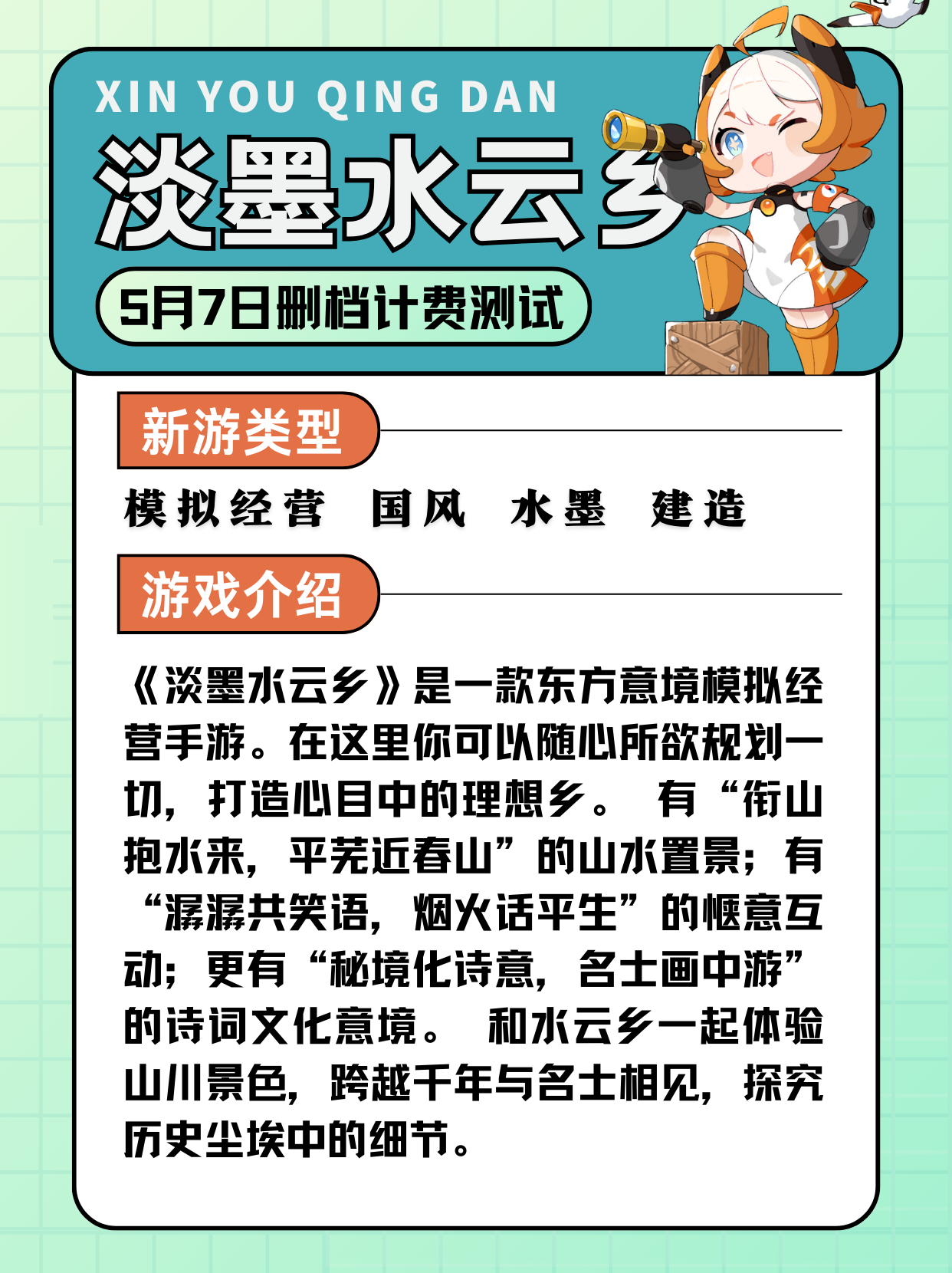 本期的新游清单已经落下帷幕啦。各位小伙伴们,不知道你们沉浸在哪些令人心动的游戏卡片中了呢?是否已经迫不及待地踏上了《淡墨水云乡》的奇幻之旅,或是投身于《剑灵2》的激战之中,又或是徜徉在《西游:笔绘西行》的西行之路里,要是晓霜的话,一定是去云鲸岛搭建梦想中的空中家园!