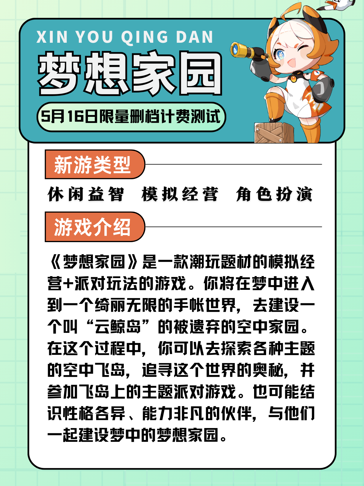 哈喽,游戏圈的宝宝们!我是版主沐晓霜,5月总计推荐8款重点新游,为了方便各位小伙伴阅读,沐晓霜拆成了2期内容,这里是第一期!欢迎各位小伙伴观看!