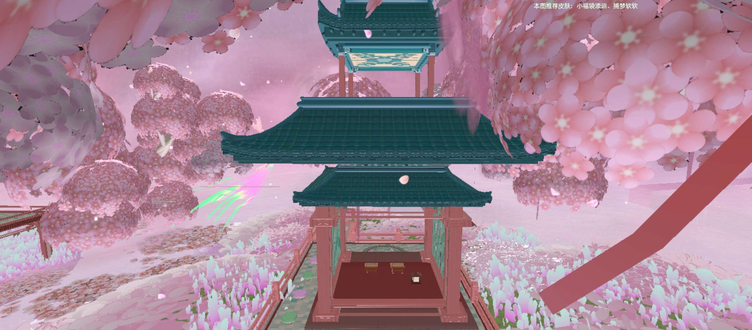 这里就是跑酷的终点啦,终点有四个传送门,分别通往四个亭子🏛️旁边就是终点,碰一下就过关啦📸