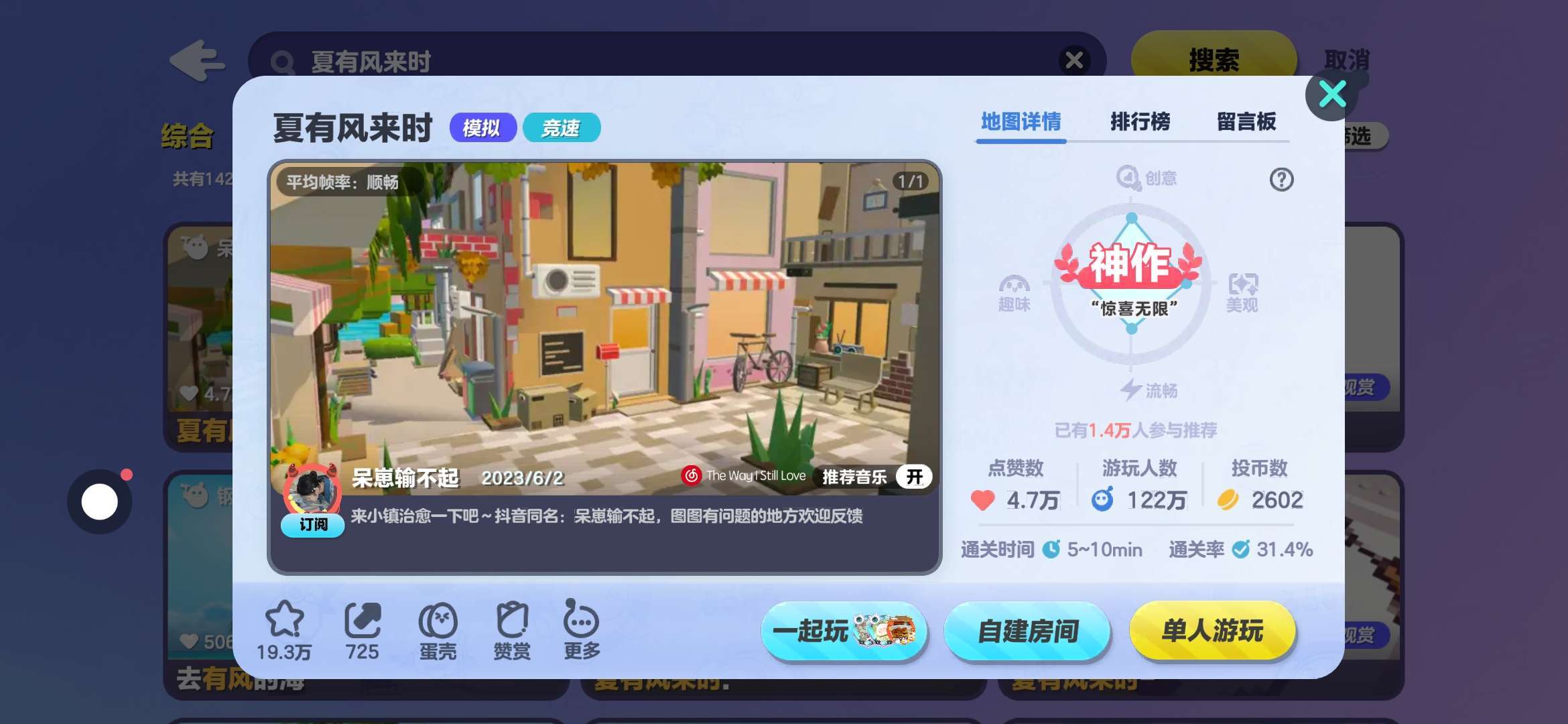而言之,对于我来说这张图做的真的非常好🎉我最看重的就是那树叶,一片一片飘落下来,而且你在地图里仔细听会听见海浪声呢💦这一切的房子似乎都像真的,也许这就是游戏中的惬意吧🌾