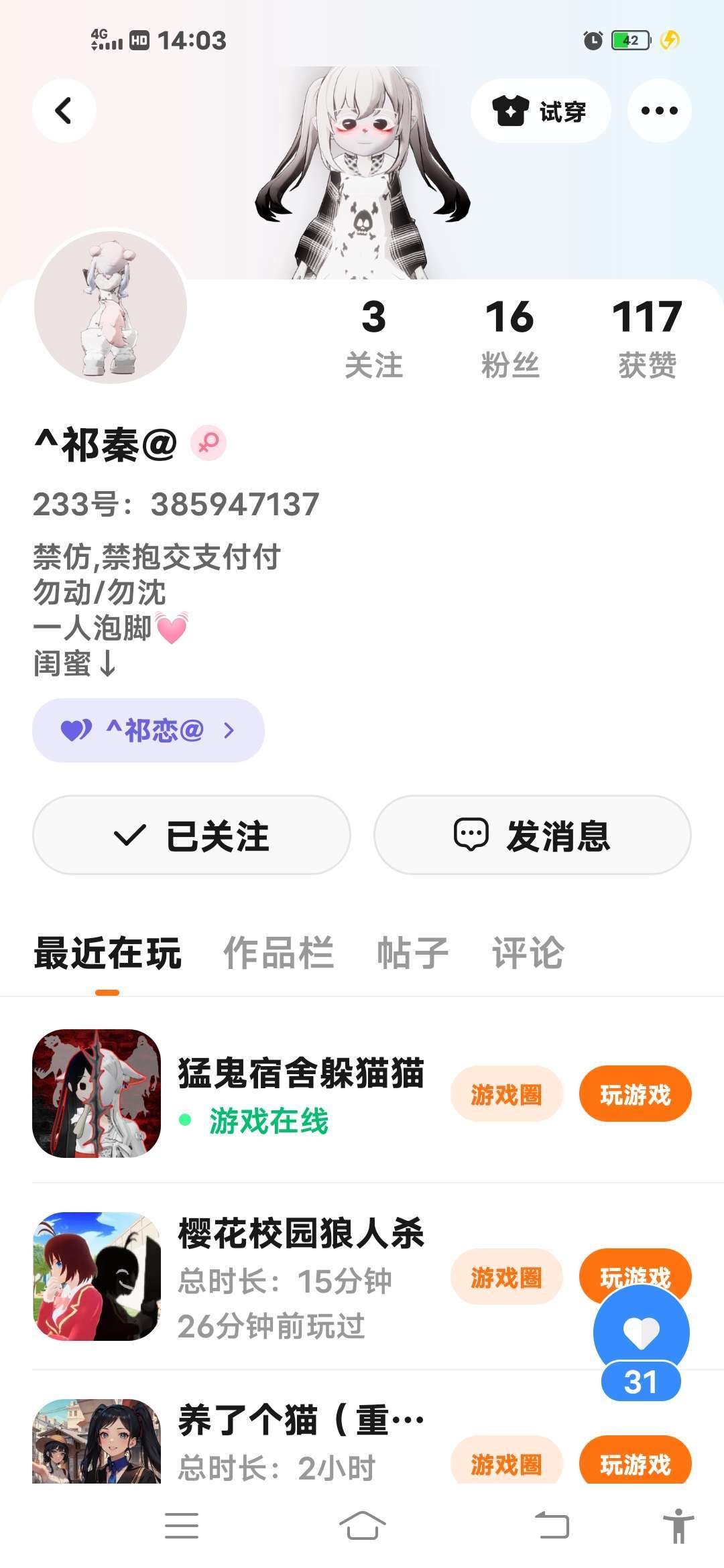 她是我…闺,她说我们要作一辈闺蜜,可是她……………离线了没有上线过😭😭😭