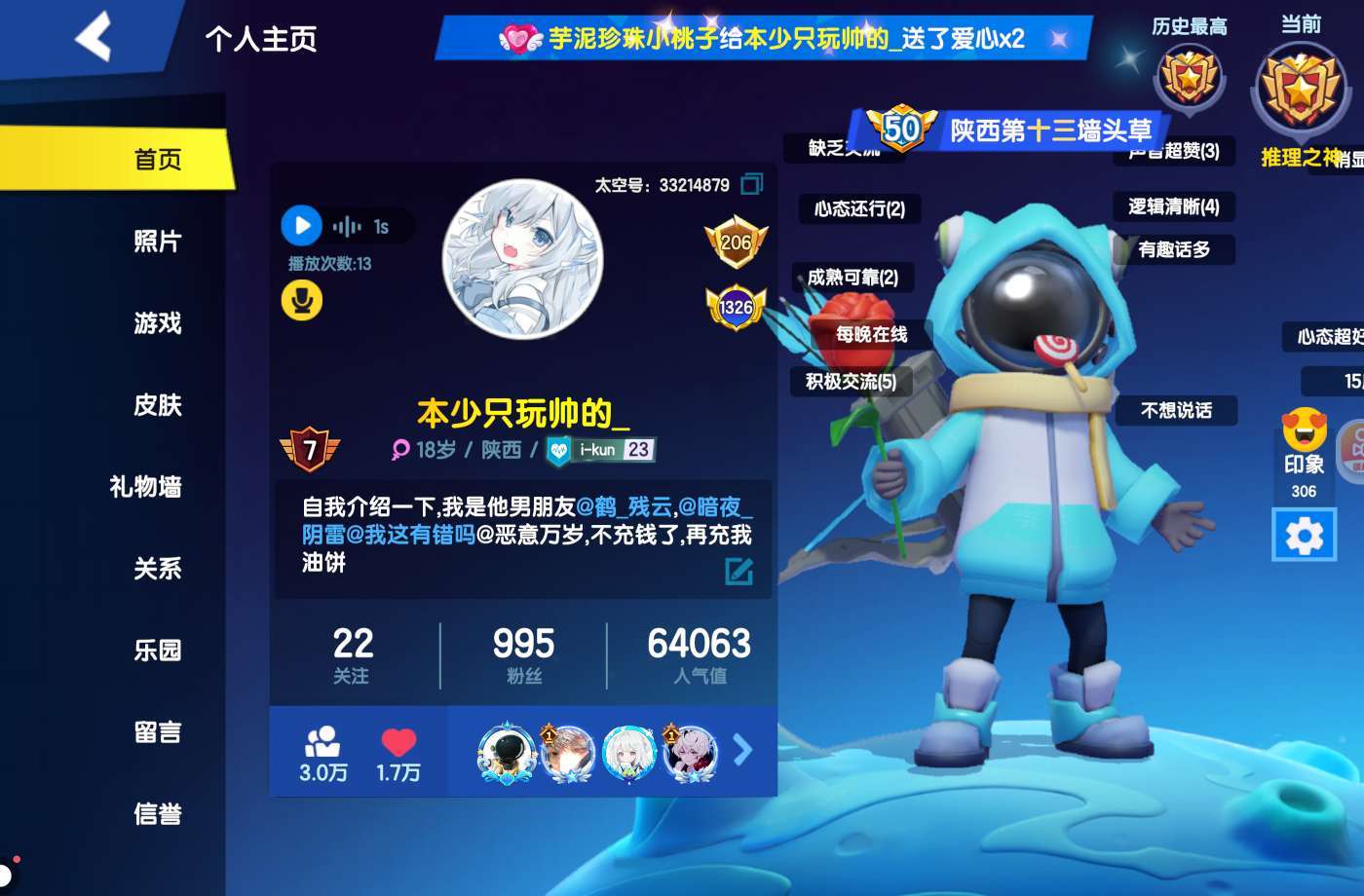 有没有一起玩的,本人一共有2个号◉‿◉我知道我很菜,找个不嫌弃我的