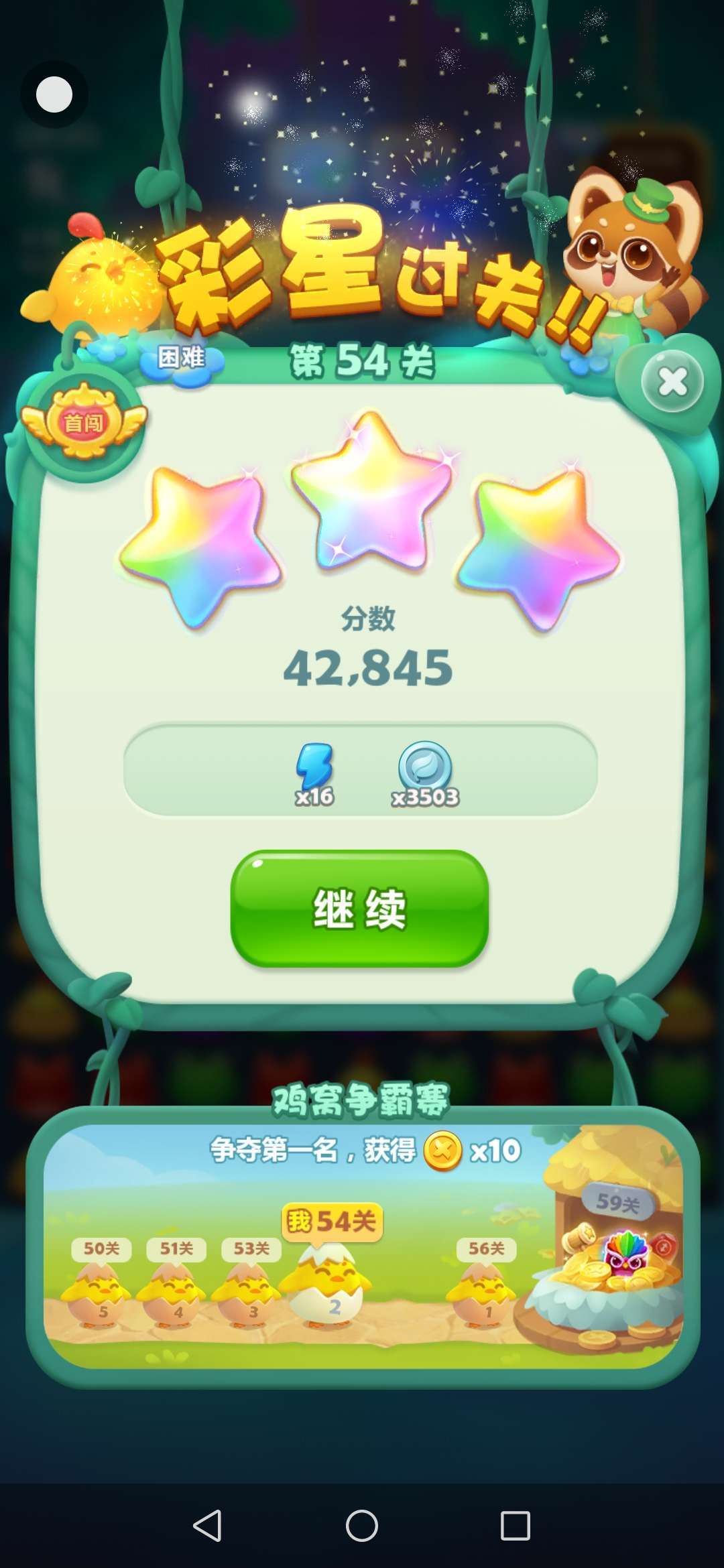 第54关,试了五次,终于彩星过关🌚太不容易了🙃