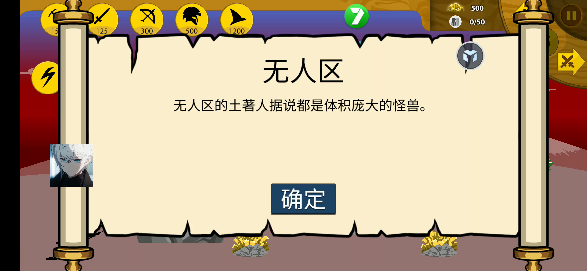 国王和两个黄金弓箭手黄金矛士VS无人区