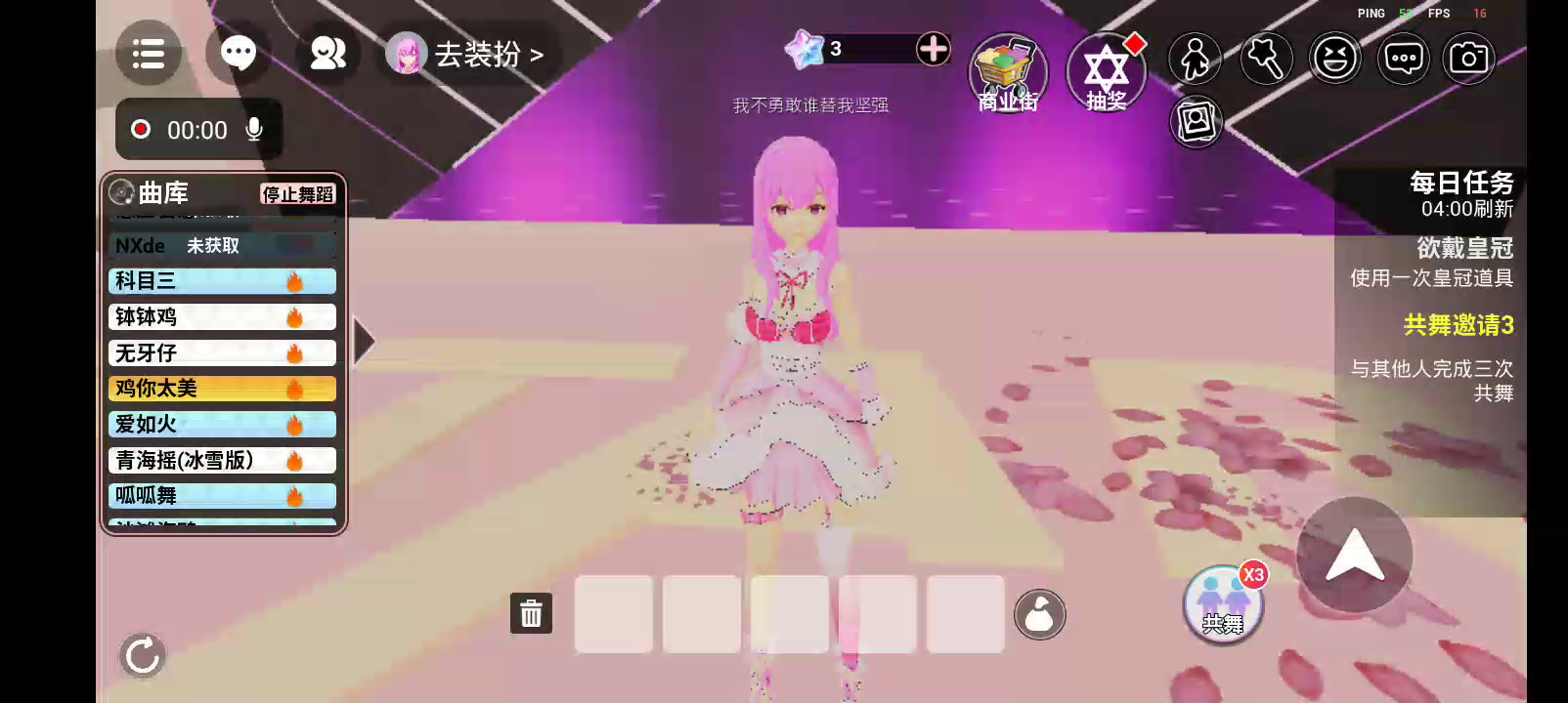 233派对精选地图-樱花音乐俱乐部 ※打开声音体验更佳哦 快来樱花音乐俱乐部跳舞吧~ 游戏包含2024年热门舞蹈,并持续更新,赶快叫上你的小伙伴一起体验吧!