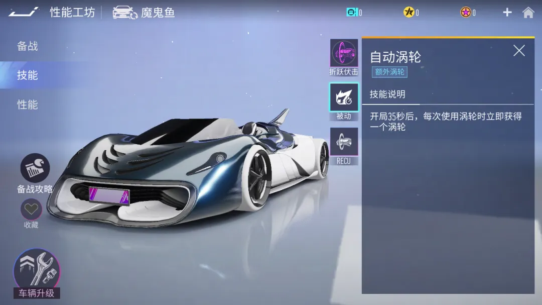被动特性-自动涡轮:开局35秒后,每次使用涡轮时立即获得一个涡轮。