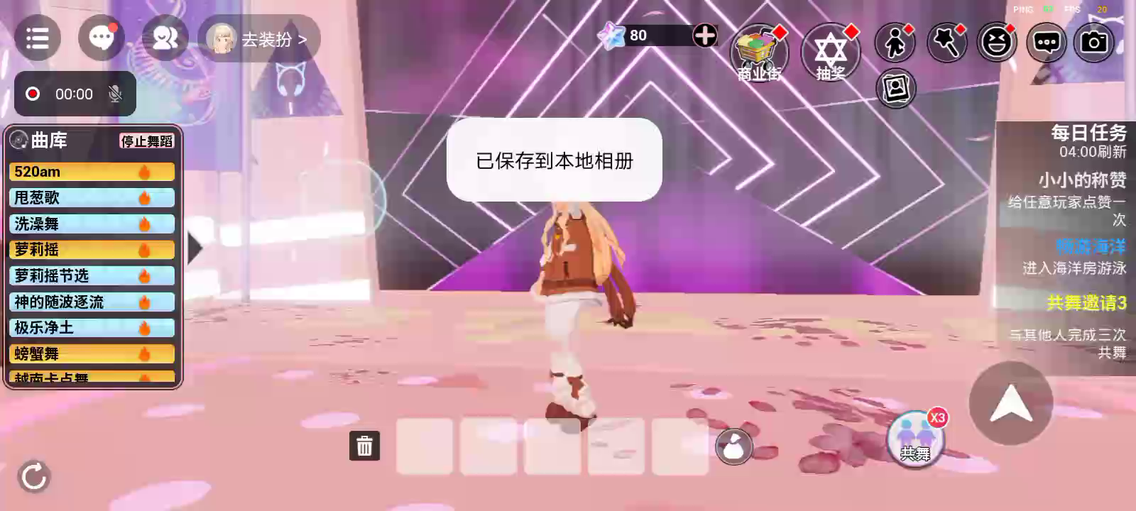 233派对精选地图-樱花音乐俱乐部 ※打开声音体验更佳哦 快来樱花音乐俱乐部跳舞吧~ 游戏包含2024年热门舞蹈,并持续更新,赶快叫上你的小伙伴一起体验吧!