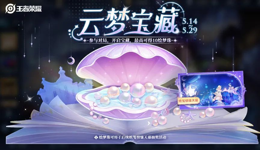 活动期间,小伙伴们完成1局5V5对局任务,即可解锁云梦宝藏开启资格。完成任务后,可在活动界面支付10点券,开启云梦宝藏。开启云梦宝藏必得酷炫机甲(1日) ,可额外随机获得1~10枚绘梦珠!(绘梦珠可用于纸笺情愫个性祈愿活动) 。